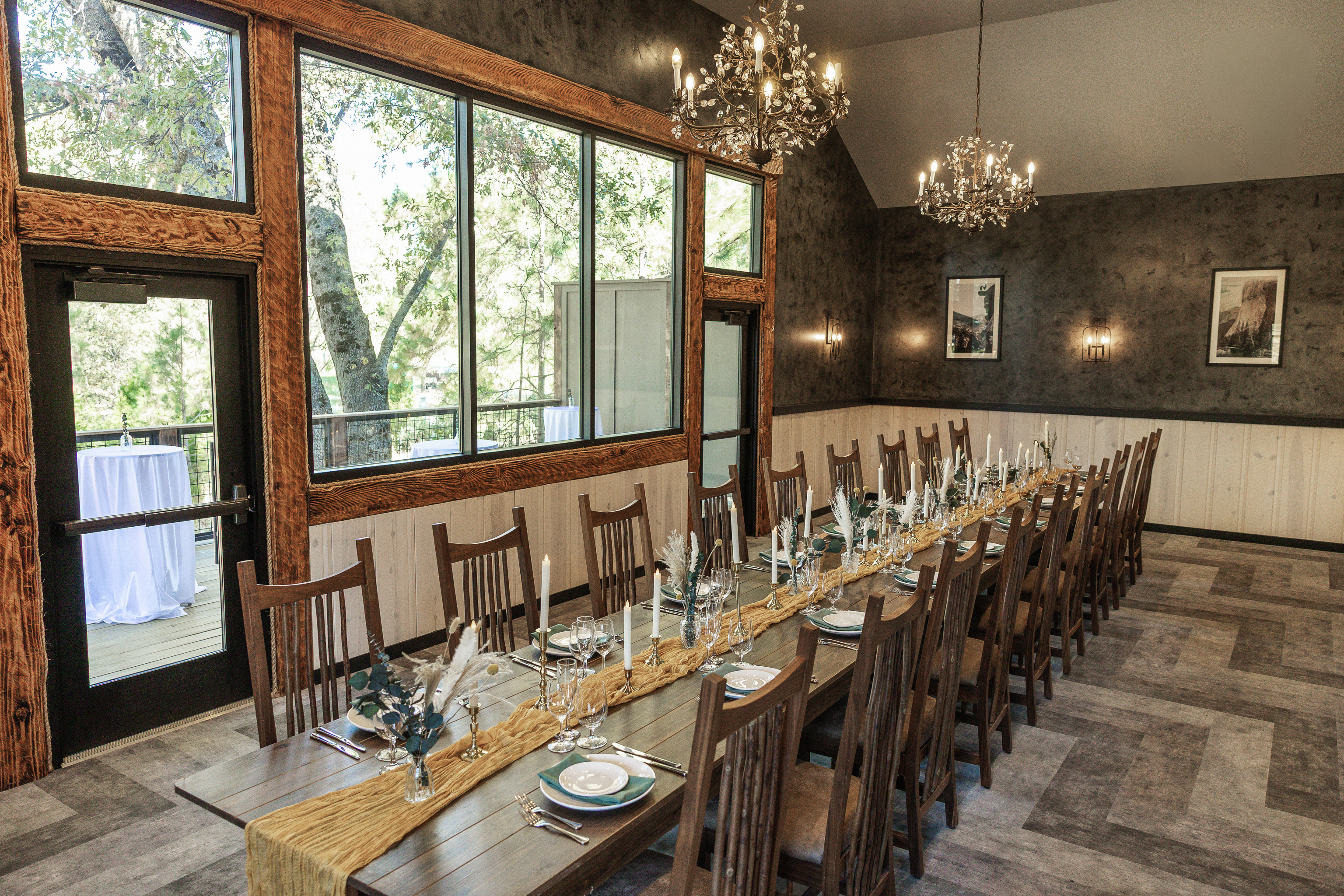 Firefall Ranch offers an idyllic backdrop for couples seeking a romantic and secluded wedding experience. Surrounded by towering pine trees and the tranquil sounds of nature, the ranch’s intimate ambiance sets the stage for an emotional and deeply personal moment. No matter your ceremony site, you can still host your closest friends and family for a fully catered meal in our private dining room or tavern lawn.